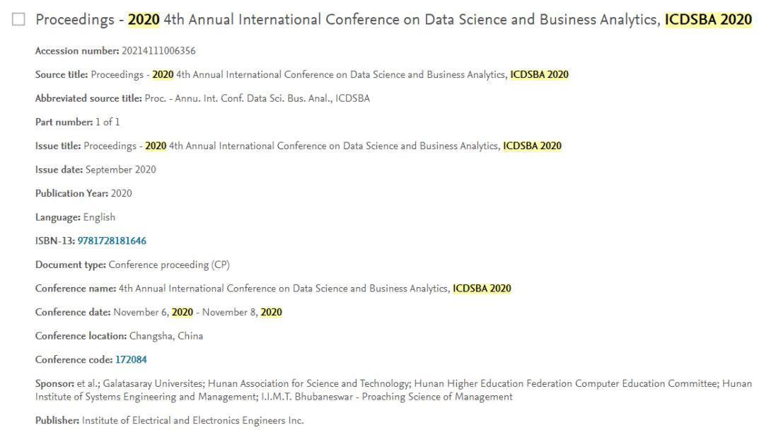 All accepted papers of ICDSBA-2024 will be published by Conference Publishing Services (CPS). Conference publication of CPS is submitted to EI Compendex, CPCI, Scopus, INSPEC and Current Contents on Diskette for indexing.